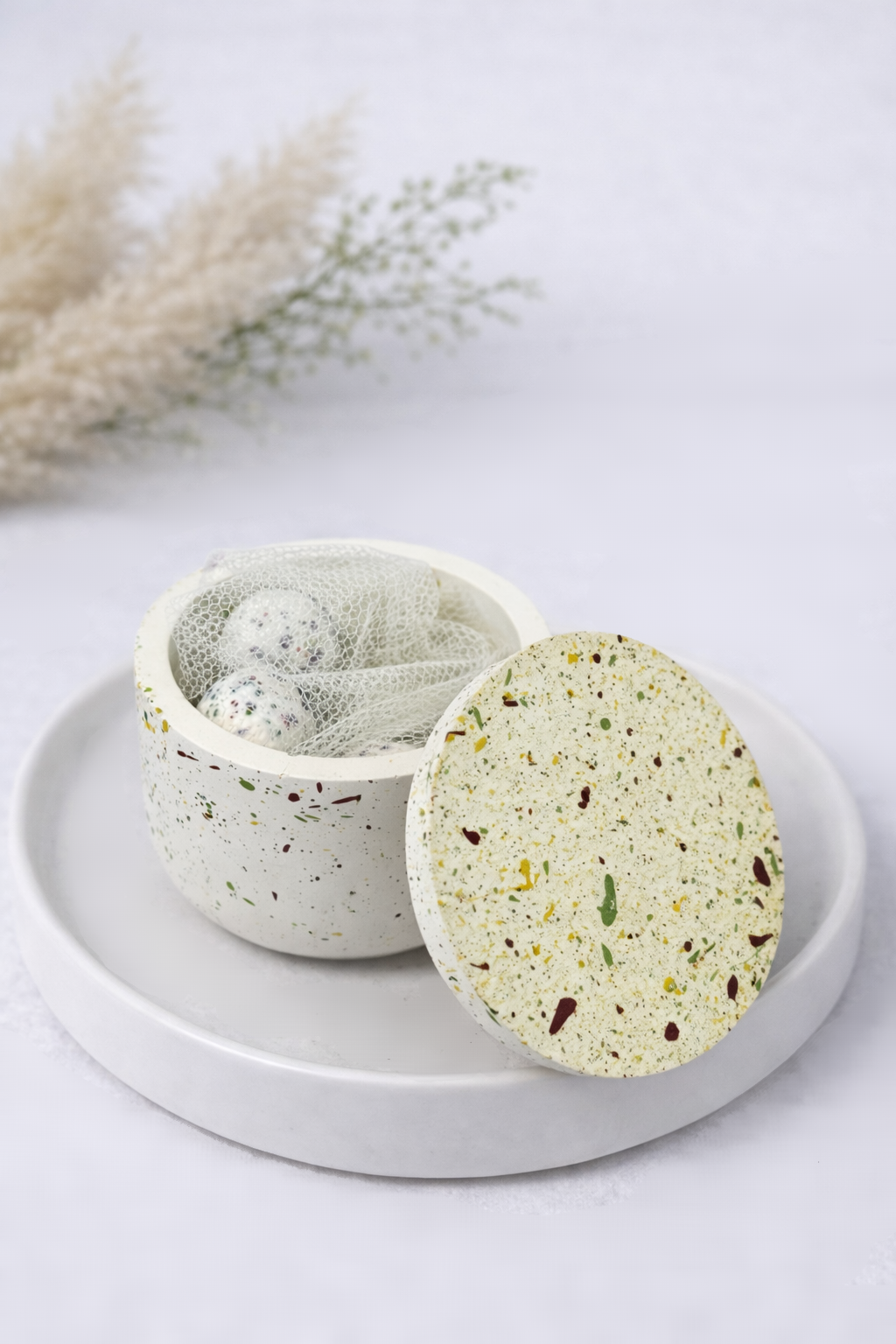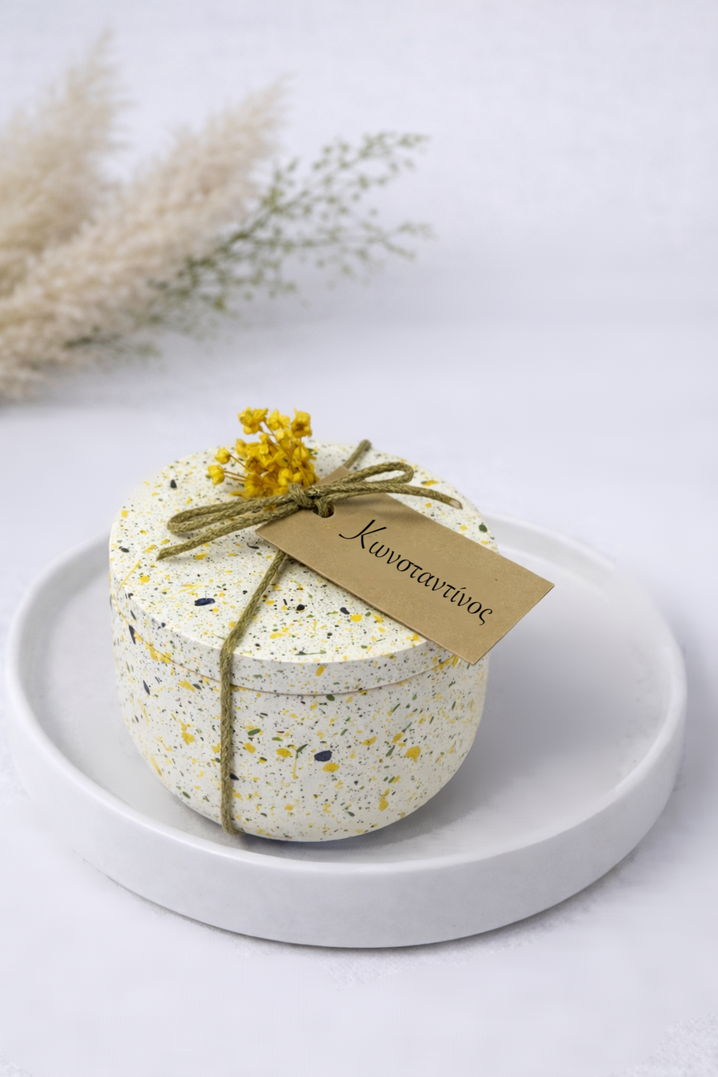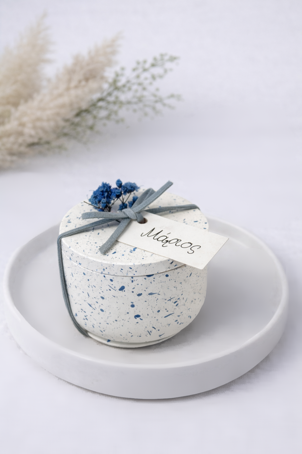 Χειροποίητη μπομπονιέρα σε πιτσιλωτό βαζάκι με minimal και φυσική αισθητική. Κάθε βαζάκι είναι μοναδικό, με ζωγραφισμένες πιτσιλιές και προσεγμένο δέσιμο, αποπνέοντας ανοιξιάτικη φρεσκάδα και κομψότητα.