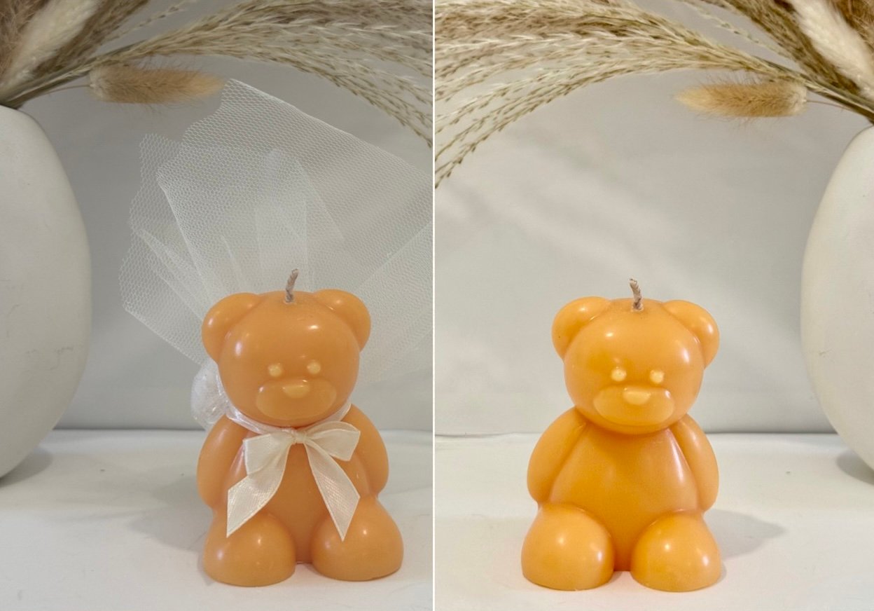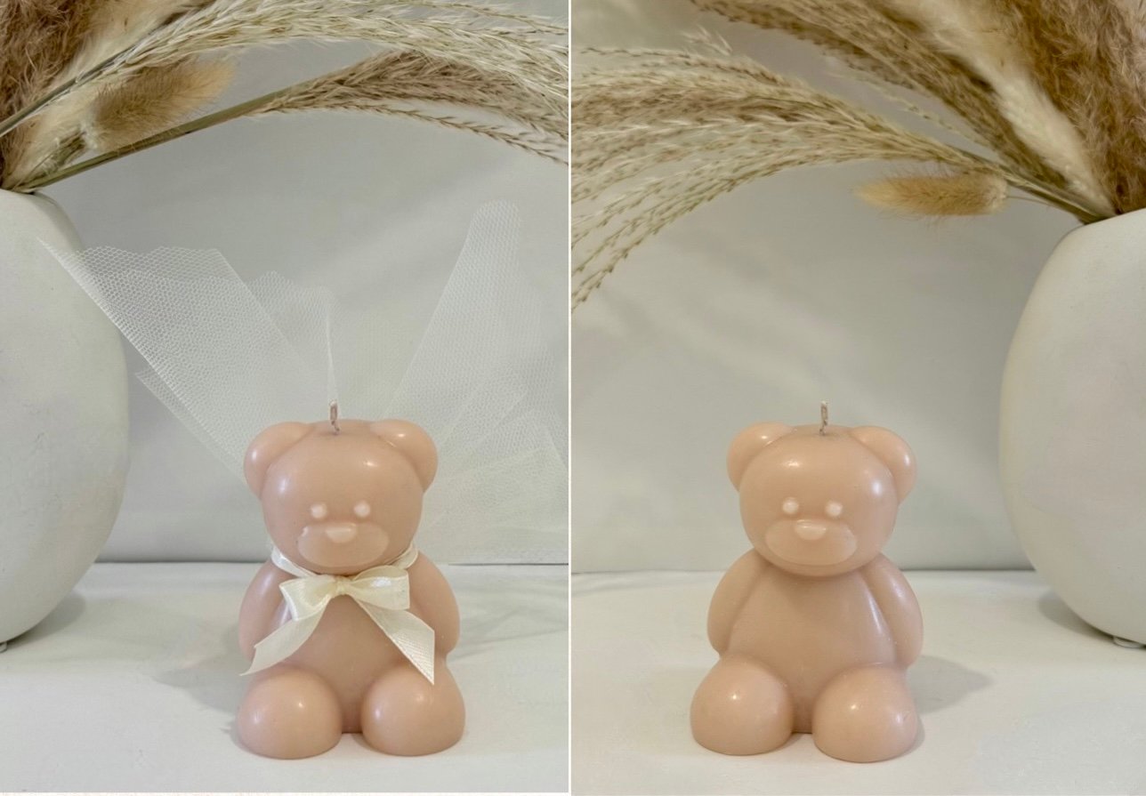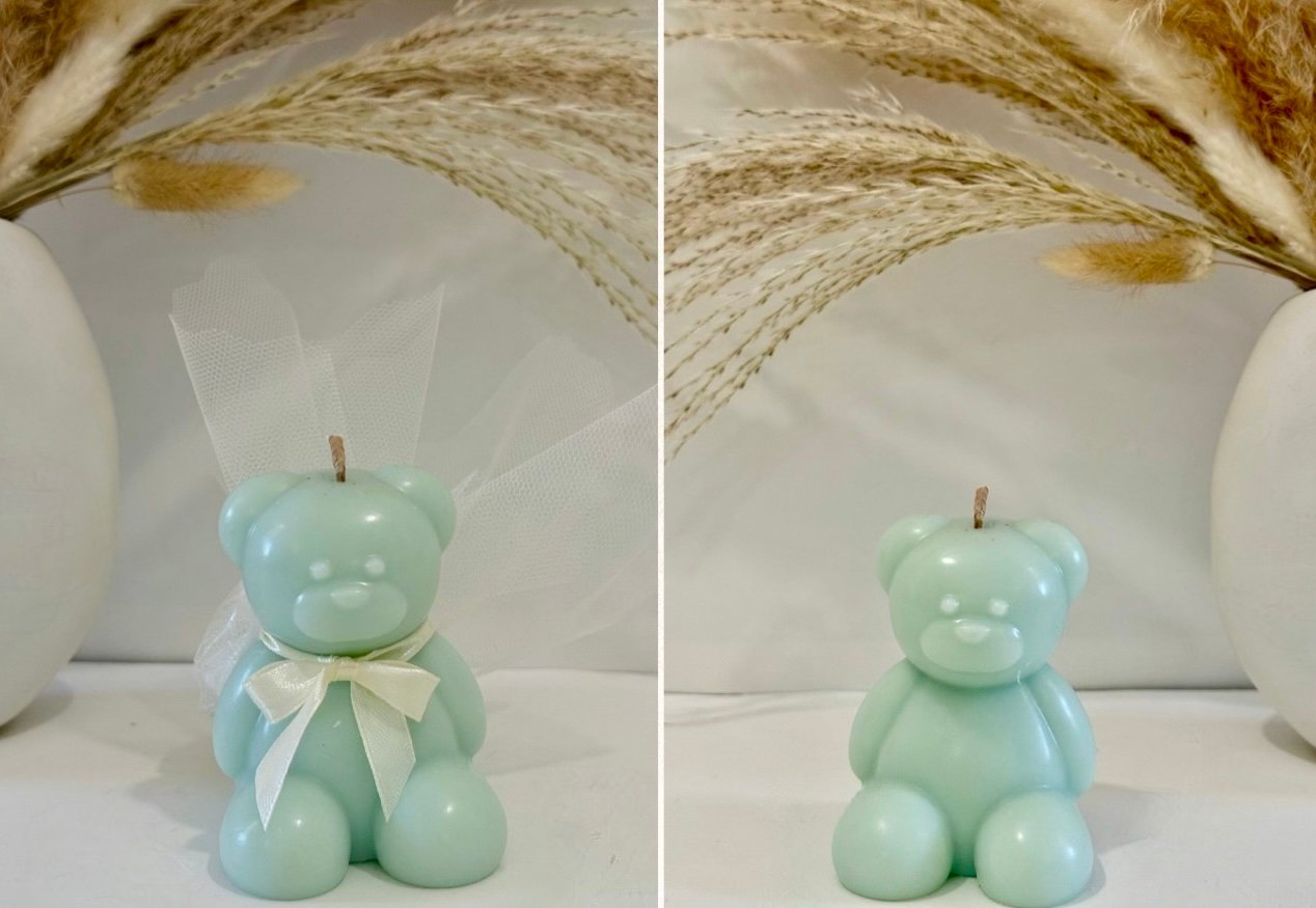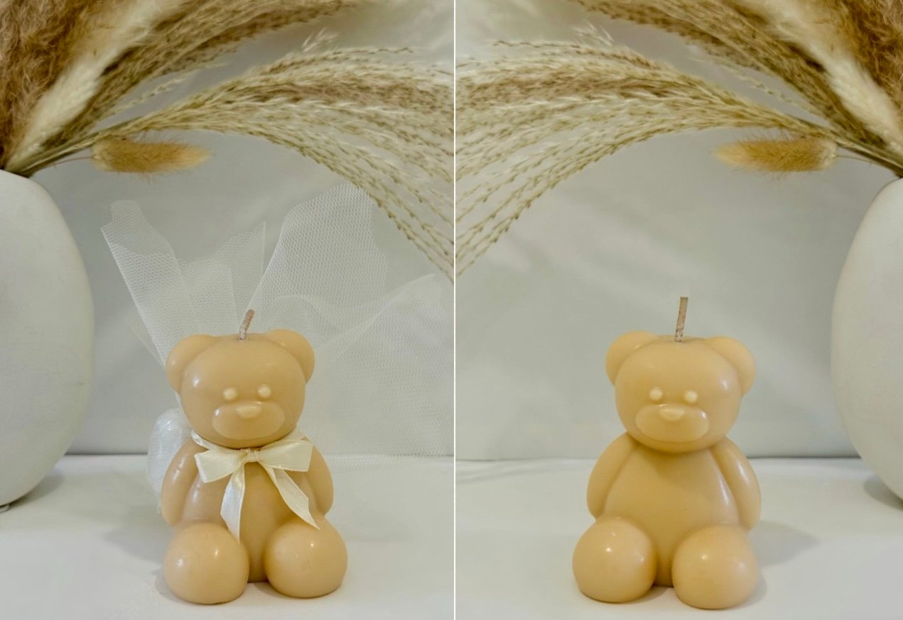 Χειροποίητο XL αρκουδάκι με 100% φυτικό κερί σόγιας, ιδανικό ως μπομπονιέρα βάπτισης ή ξεχωριστό δώρο.