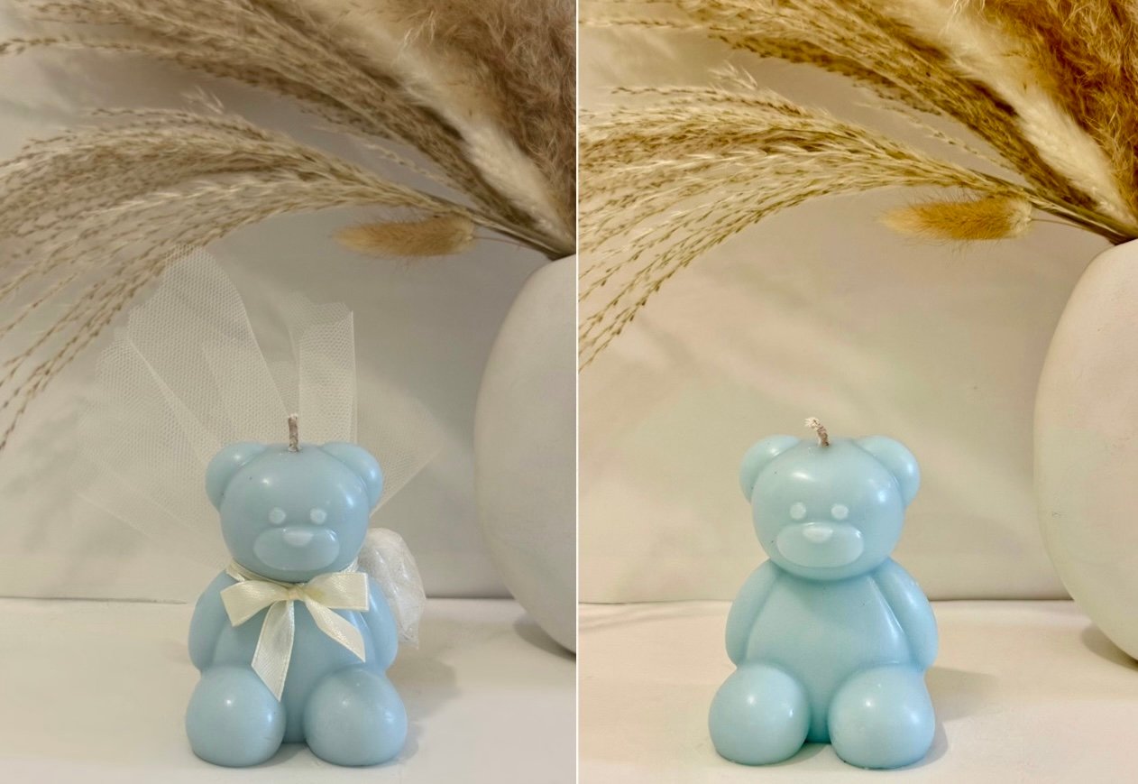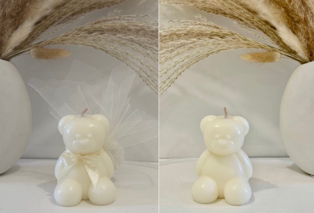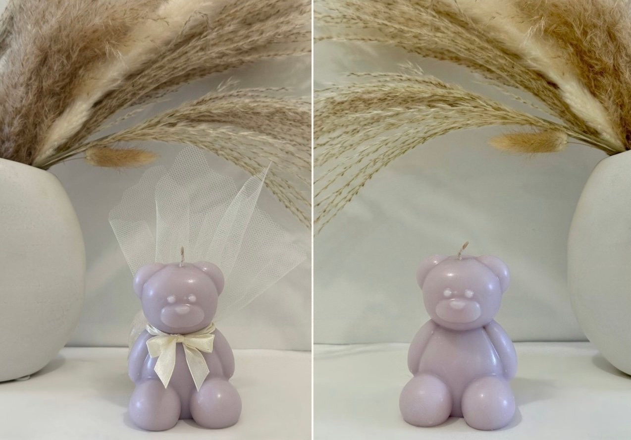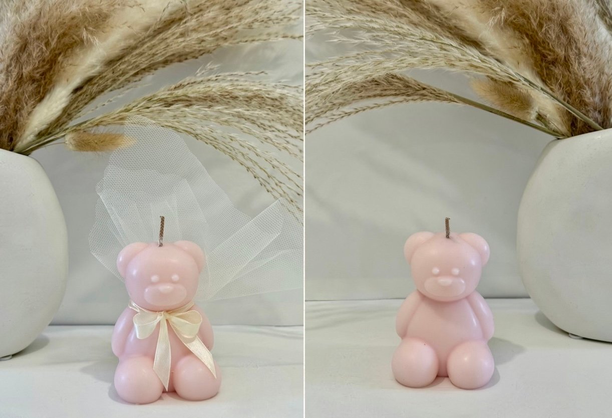 Χειροποίητο XL αρκουδάκι με 100% φυτικό κερί σόγιας, ιδανικό ως μπομπονιέρα βάπτισης ή ξεχωριστό δώρο.