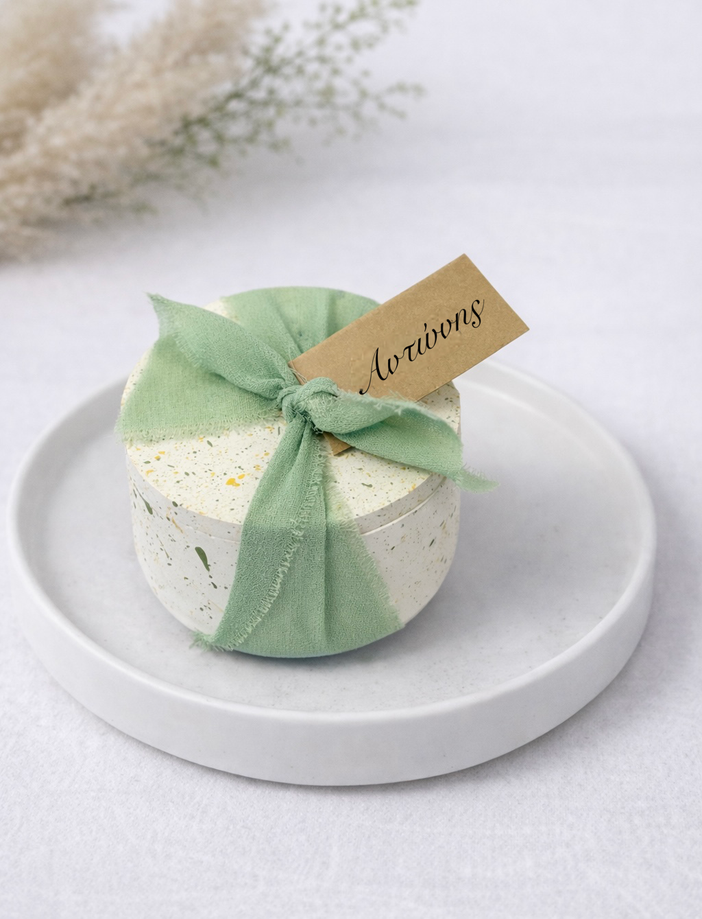 Χειροποίητη μπομπονιέρα σε πιτσιλωτό βαζάκι με minimal και φυσική αισθητική. Κάθε βαζάκι είναι μοναδικό, με ζωγραφισμένες πιτσιλιές και προσεγμένο δέσιμο, αποπνέοντας ανοιξιάτικη φρεσκάδα και κομψότητα.