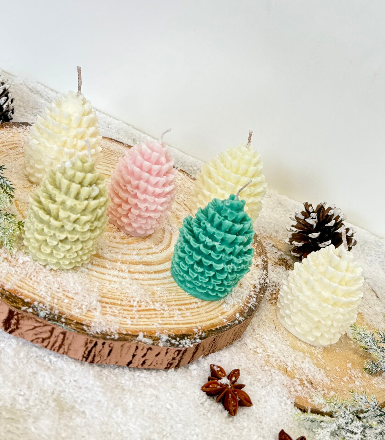 Κερί σε σχήμα κουκουνάρι, φτιαγμένο από 100% φυτικό κερί σόγιας. Μια ιδιαίτερη, οικολογική και ατμοσφαιρική πινελιά που χαρίζει φυσική ζεστασιά και κομψότητα στη διακόσμησή σου — ιδανικό για τον χειμώνα και τις γιορτές.